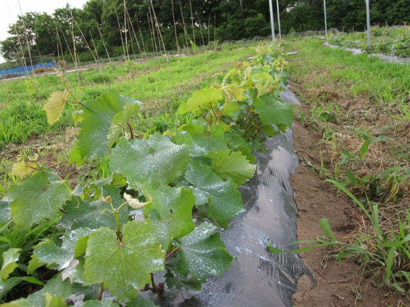 草もブドウもかぼちゃも梅雨空に合わせるかのように歩調を合わせて大きく成長します。体があと2つ欲しいこの頃です。