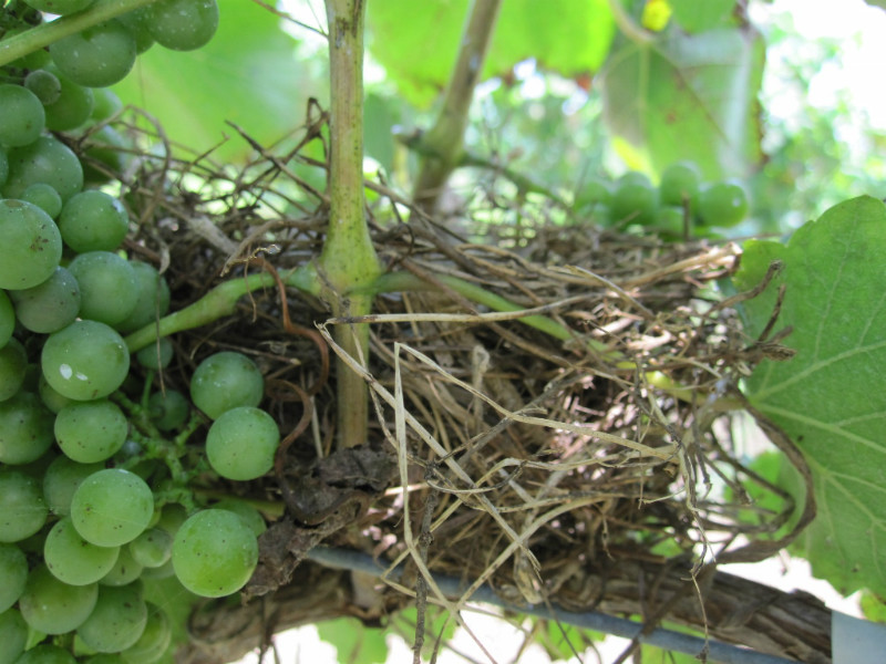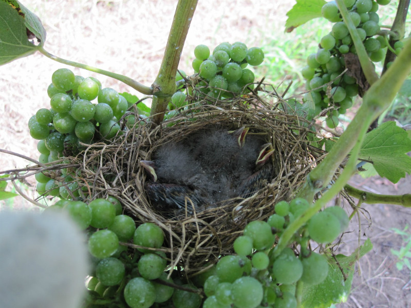 プロのブドウ栽培家からすると、鳥の巣ができるということは笑われるようなことなのです。鳥が巣を作るほど樹をいじっていなかったことの証拠となるからです。しかし、雛の可愛らしさはとても素晴らしいものです。年を取ると鳥への愛着が増すようですが、皆さんはいかがでしょうか?