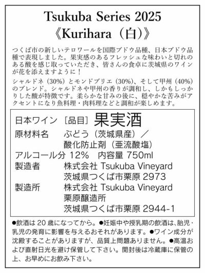 2025 Tsukuba Series kurihara 白 750㏄ 税込み価格 3300円