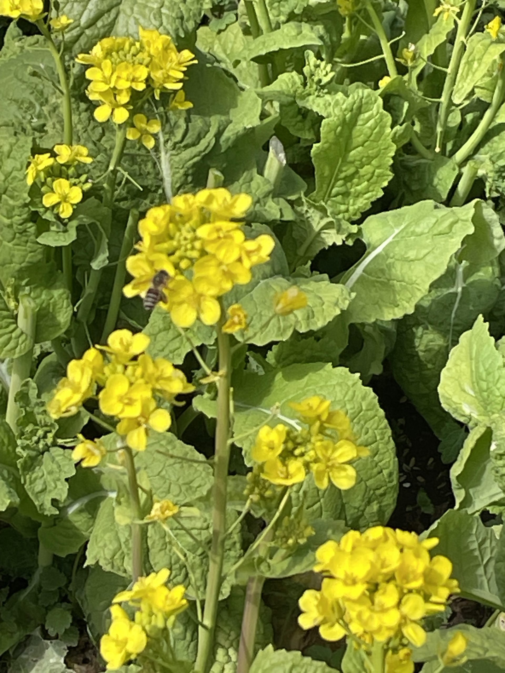 あたたかな日差しにニホンミツバチの可憐な姿を目撃しました。写真は菜の花に夢中になっている二ホンミツバチです。スズメバチやアシナガバチなどの外来種と異なり。なぜかかわいらしさを感じてしまいます。今年は第1、第2農場に各1箱の二ホンミツバチのための巣箱を置くことになりました。そのために蜜源となる花を植え、景観にも一役買おうと考えています。5-6月にはブドウの緑と蜜源の花たちの景色を楽しむことができます。ぜひ、おいでください。雑草の緑に負けているかもしれませんので。
